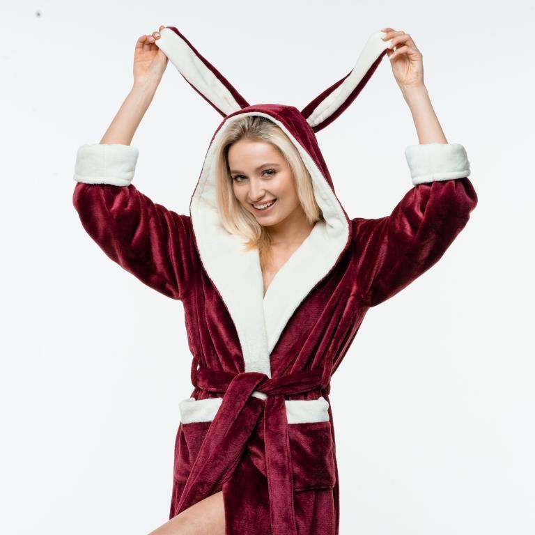 Отримайте цю позицію безкоштовно при покупці «Жіночий махровий халат з капюшоном на запах з вушками+ махрові чобітки. Колір бордо + молочний»