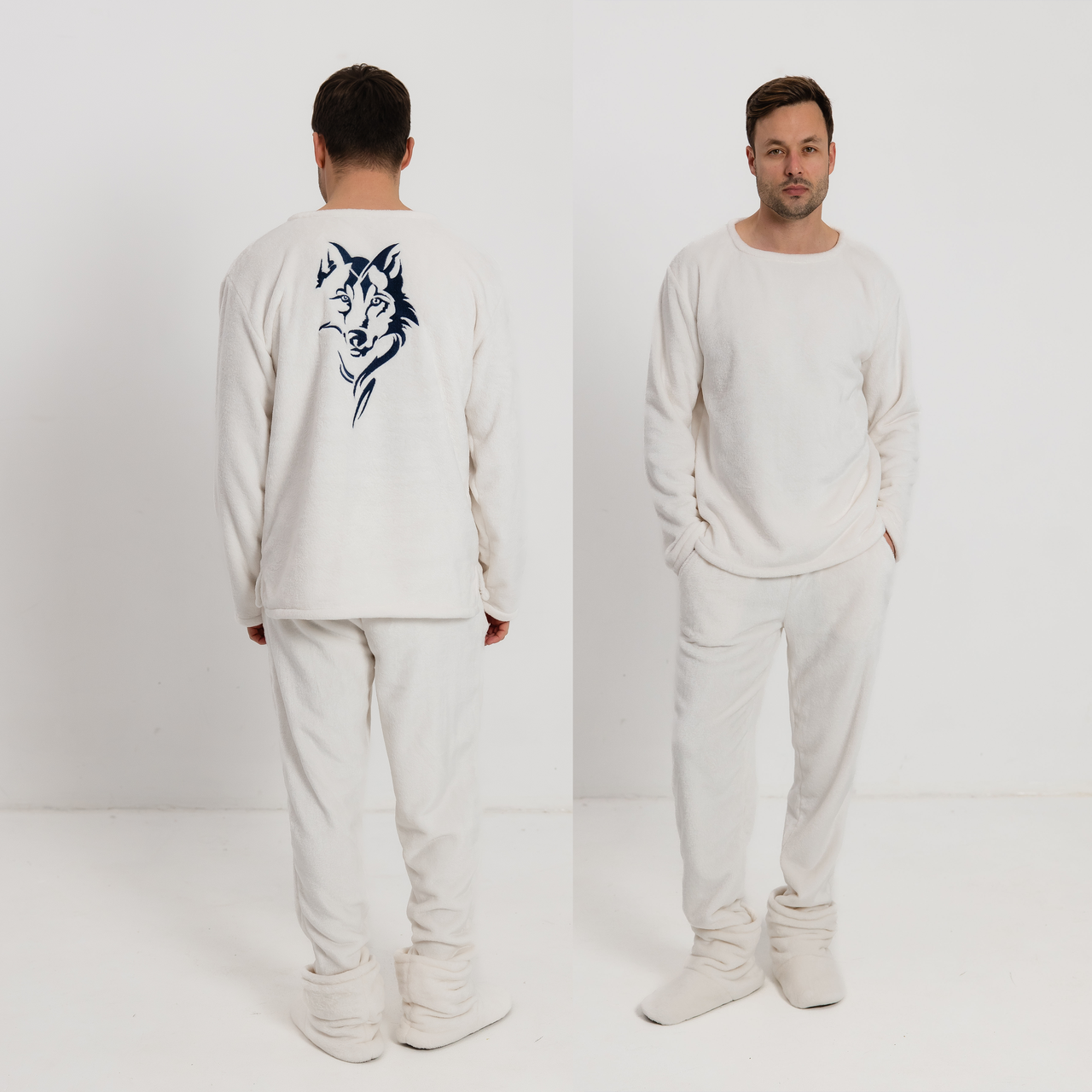 Іменна якісна махрова піжама для чоловіків Туреччина біла, Теплі чоловічі піжами